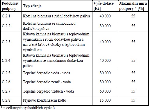 - Oblast podpory C – Efektivní využití zdrojů energie - tepelná